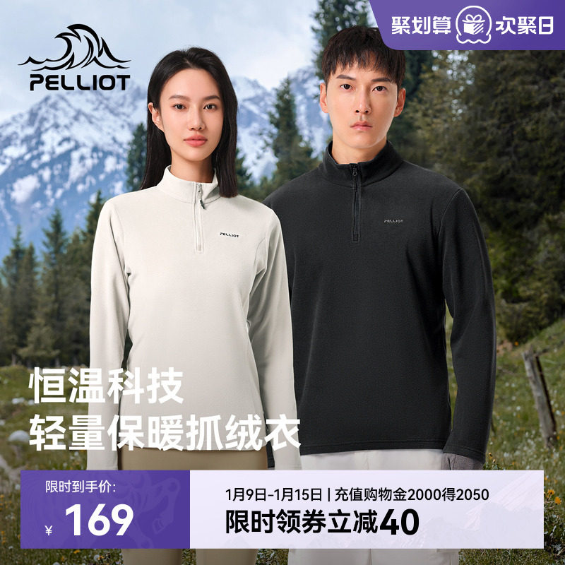 伯希和户外抓绒衣女冲锋衣内胆摇粒绒半拉链运动打底衫男休闲上衣