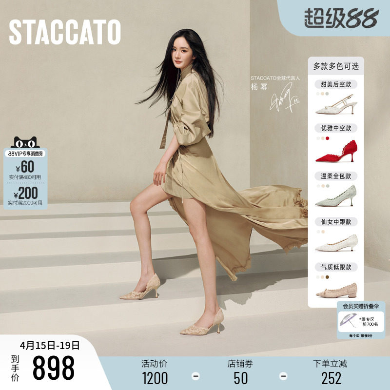 杨幂同款思加图新款Burano蕾丝岛高跟鞋绝美婚鞋法式裸色单鞋女鞋