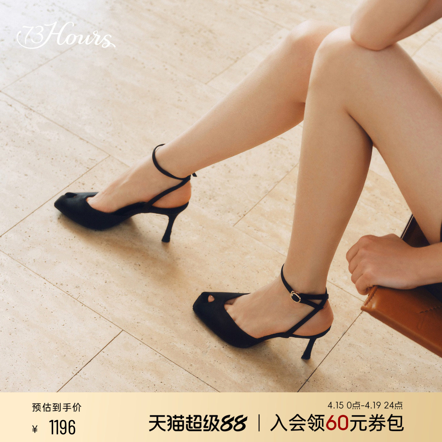 豆豆推荐73hours女鞋Gracie26年夏新款鱼嘴黑色高跟鞋女后空凉鞋