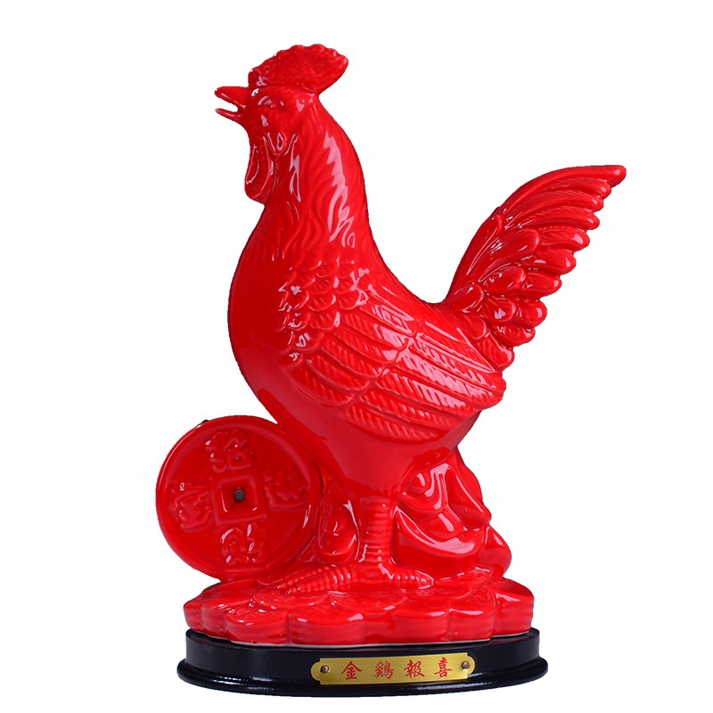大红陶瓷公鸡摆件12p生肖鸡摆件招财摆件陶瓷鸡工艺品家居风水摆