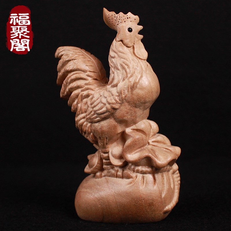小叶黄杨木雕家居装饰品大吉大利办公室全家福生肖鸡摆件招财送礼