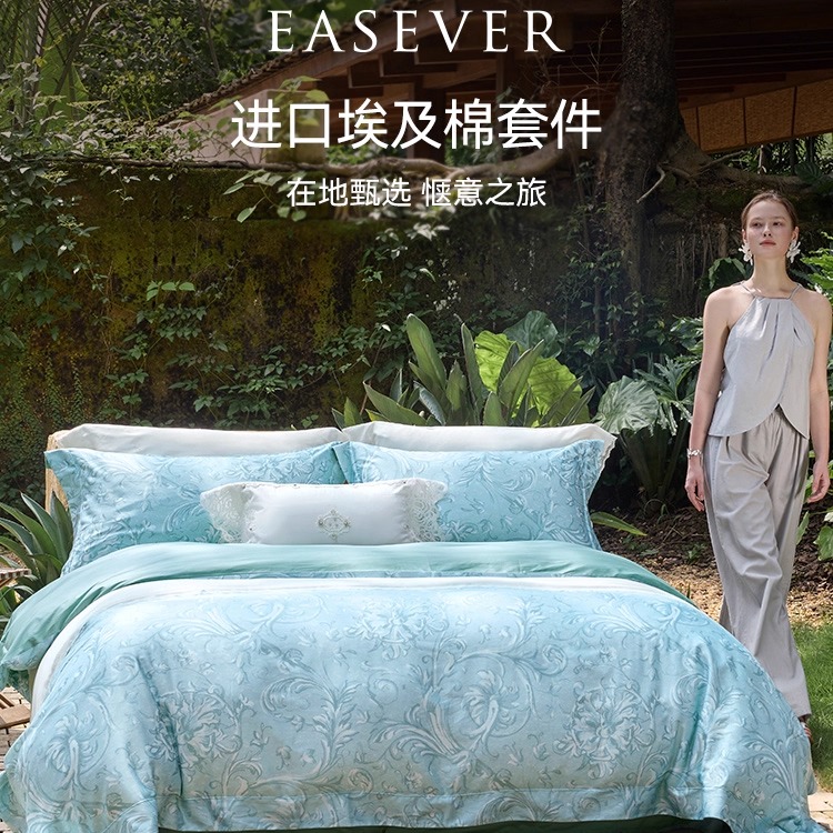 EASEVER绎生活140支埃及棉欧式四件套轻奢高级感主卧室全棉纯棉