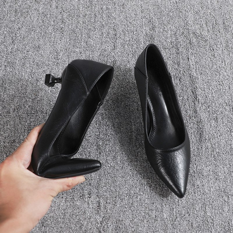 2025年新款尖头气质百搭黑色工作单鞋女舒适职业不累脚细跟高跟鞋