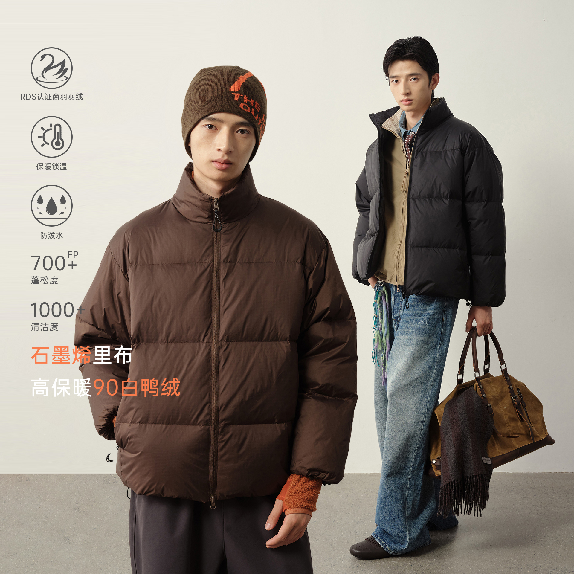 森马羽绒服男2024冬季新款加厚短款外套三防发热面包服情侣上衣潮