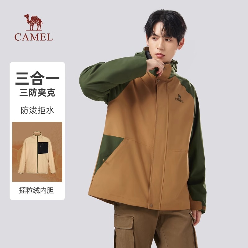 【非卖品】camel骆驼户外三合一夹克冲锋衣冬季外套男连帽风衣