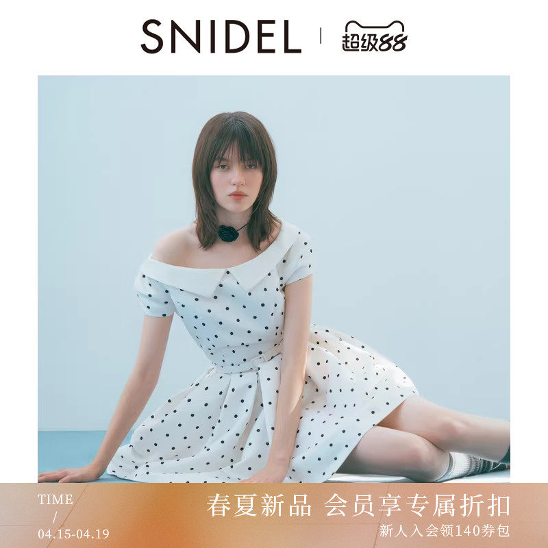SNIDEL2026春夏新品气质赫本风翻领腰带收腰短款连衣裙SWFO261303