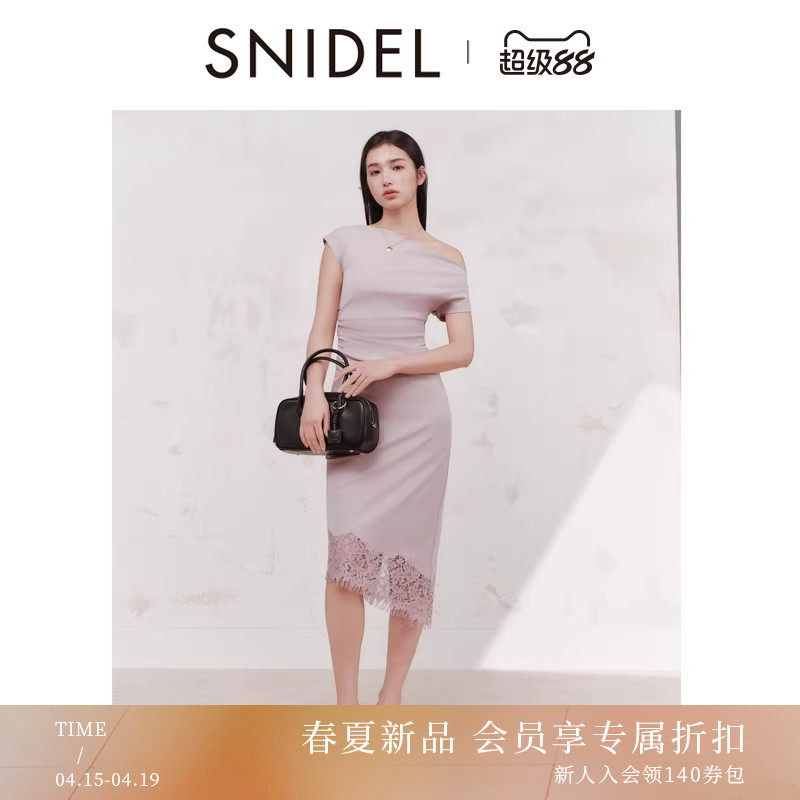 SNIDEL2026春夏新品时尚斜肩短袖蕾丝下摆连衣裙含发圈SWCO261304