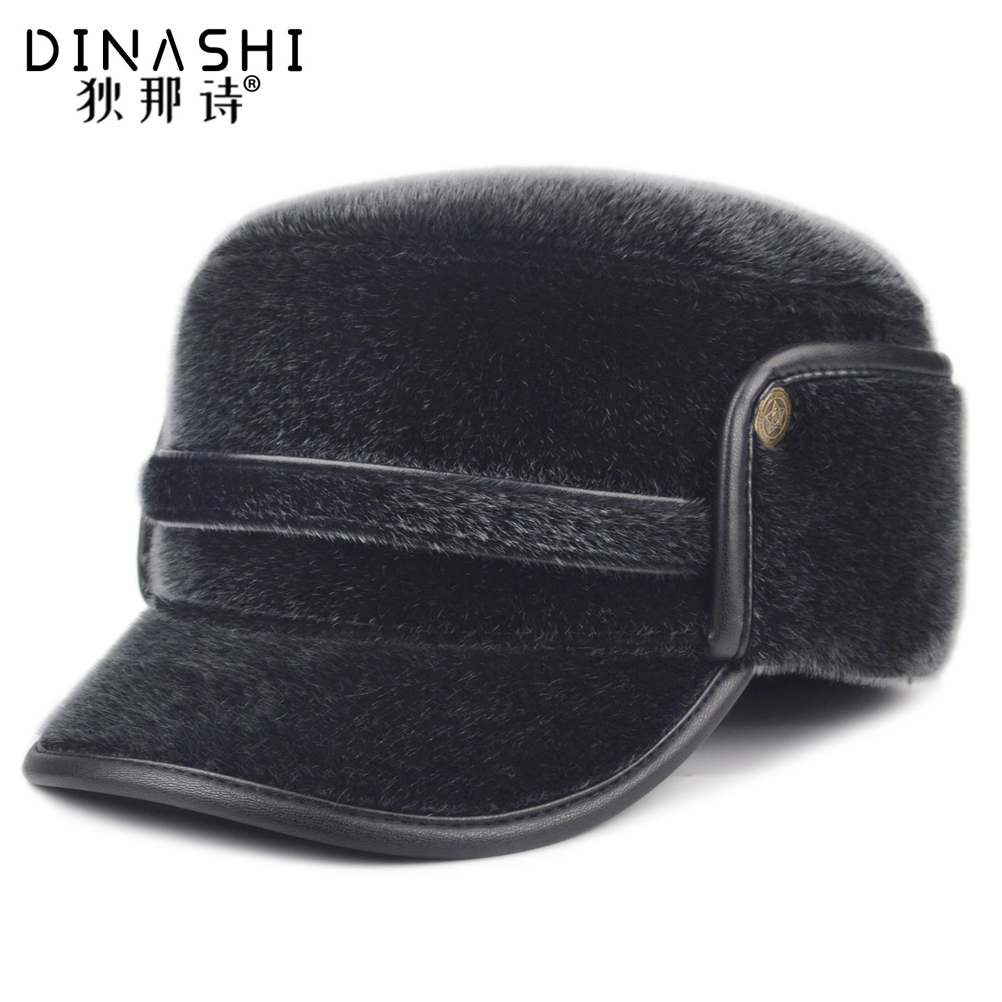 冬季男士毛绒护耳帽保暖加厚平顶帽中老年人爸爸防风户外老人棉帽