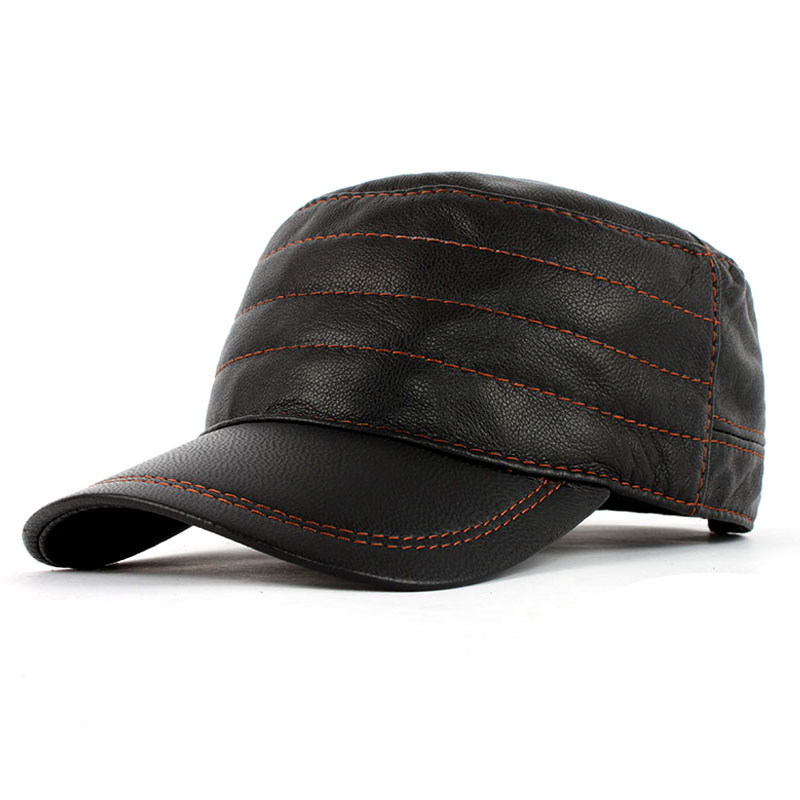 冠师傅 羊皮帽子真皮中老年四季休闲平顶帽 男士户外运动时尚皮帽