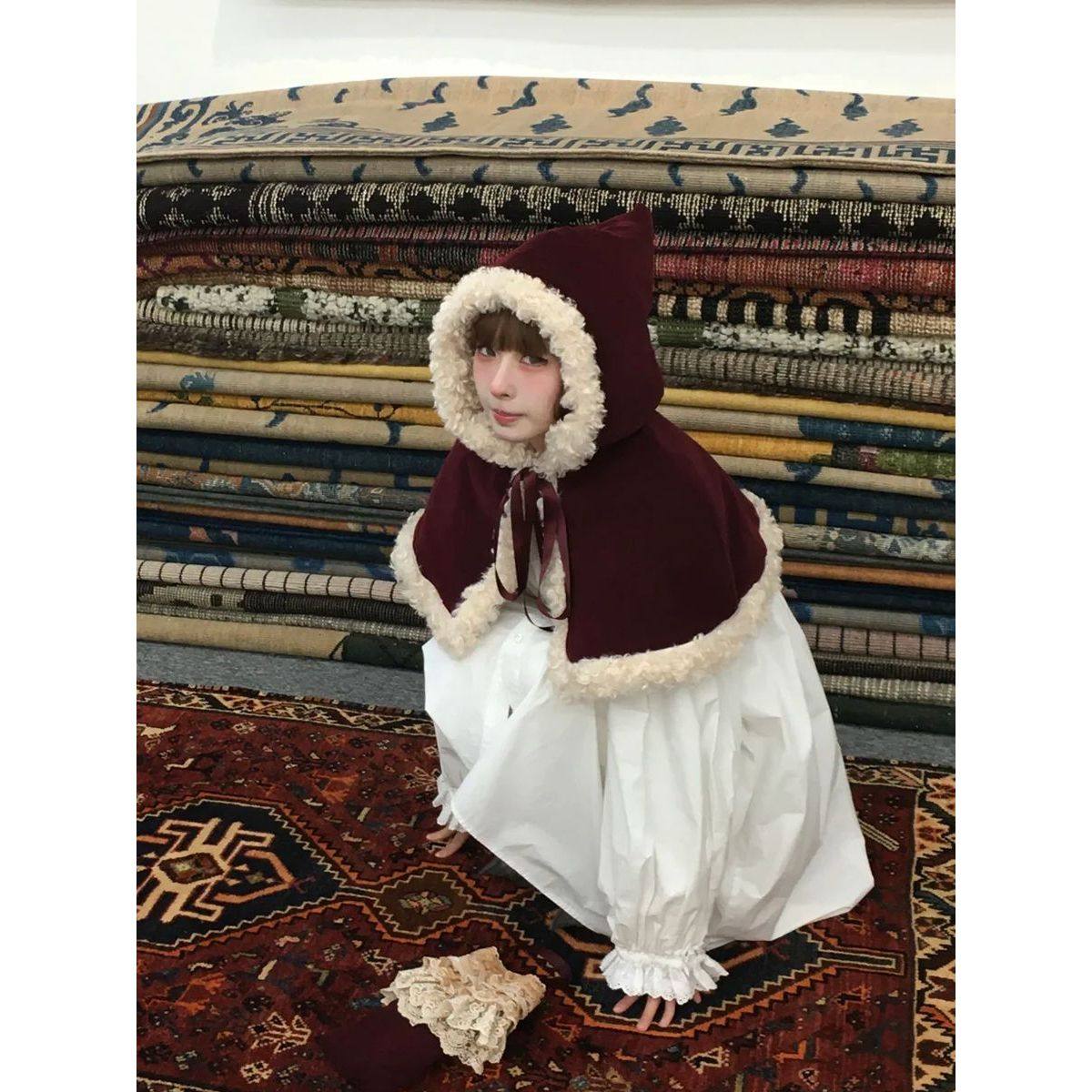 圣诞精灵 日系复古斗篷披肩设计感小众保暖护耳毛绒围脖尖尖帽女
