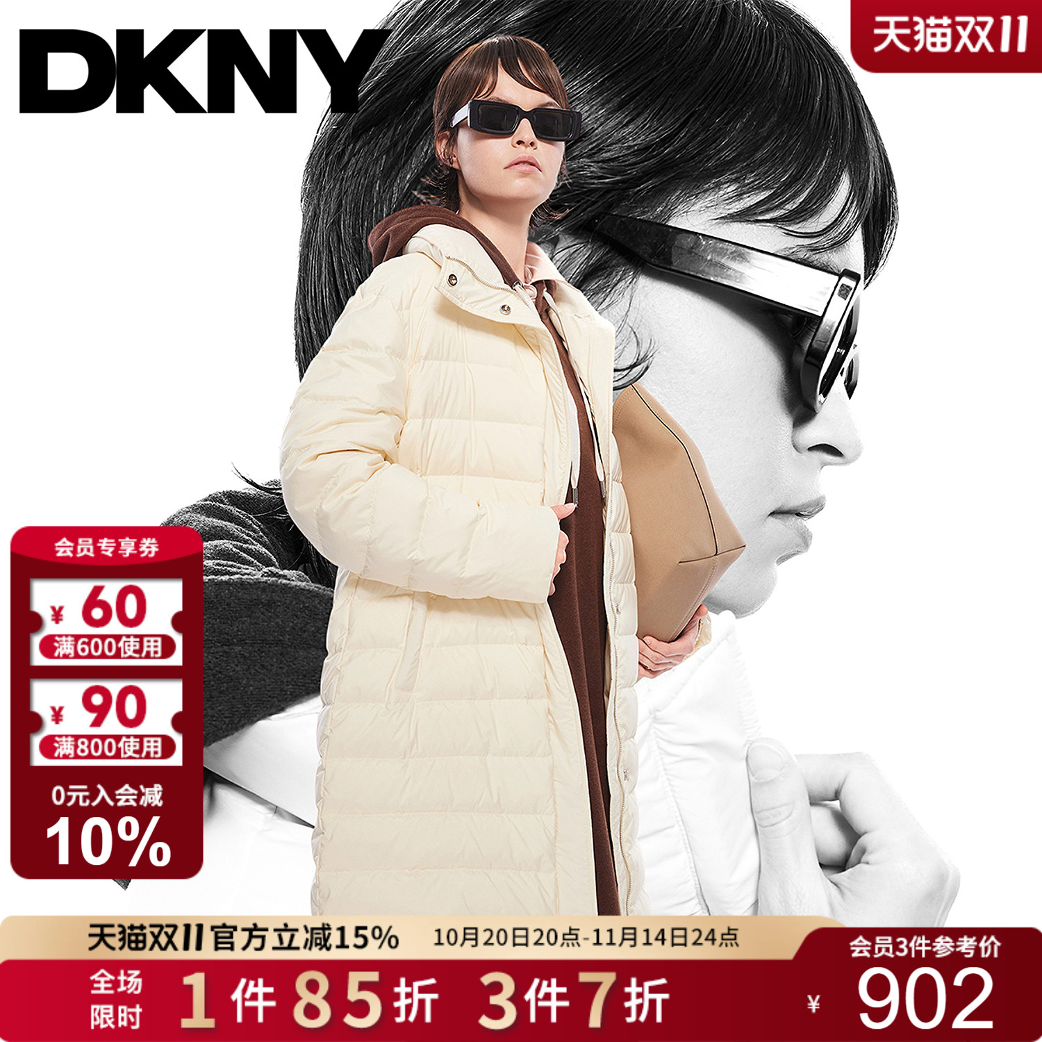 DKNY/唐可娜儿25秋冬女装立领绗缝90白鸭绒轻薄纯色中长款羽绒服