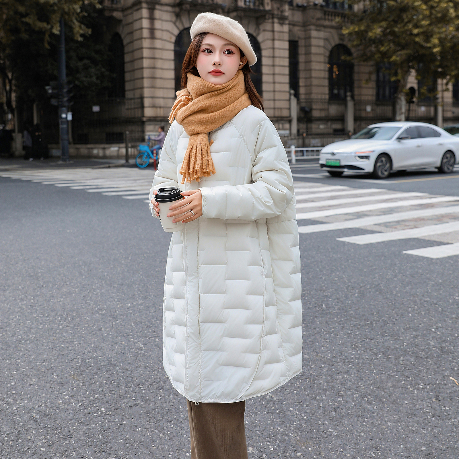 中长款轻薄羽绒服女装冬季新款韩版立领90白鸭绒时尚宽松保暖外套