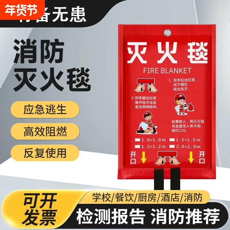 消防推荐国标灭火毯加厚阻燃消防厨房专用耐高温家用酒店逃生防火