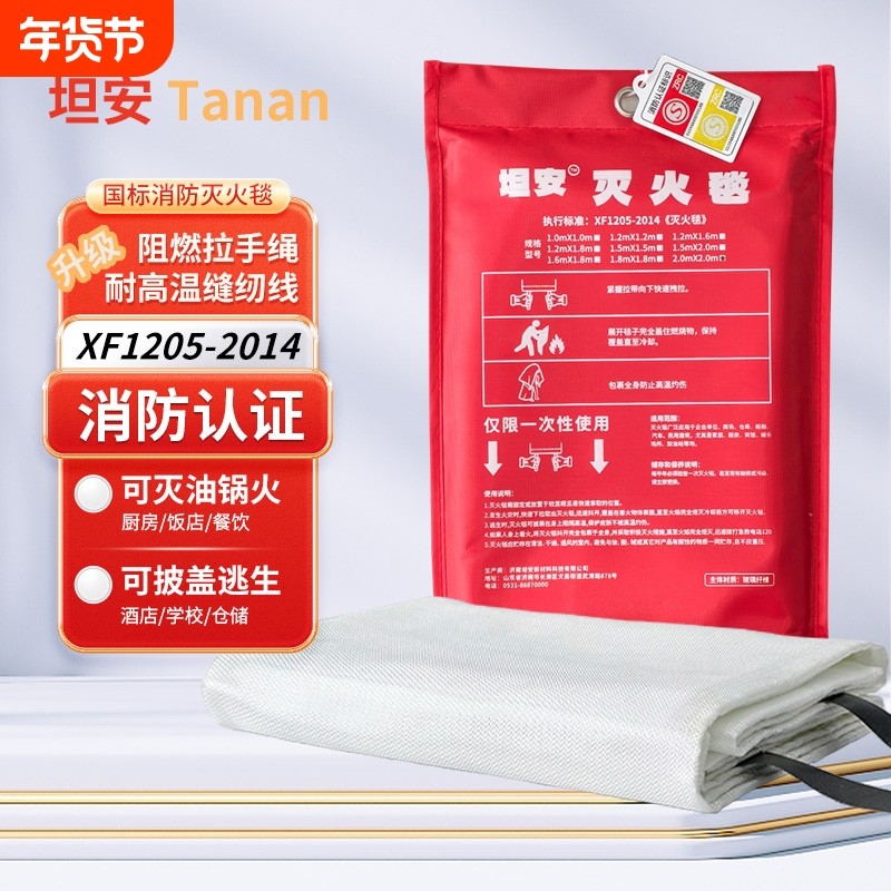 坦安消防认证灭火毯家用1.5米国标商用玻纤防火毯逃生毯专用阻燃