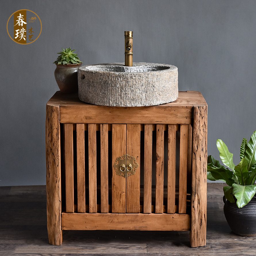 石槽洗手台盆庭院户外洗手池室外洗脸石盆老石槽水池石头盆柜组合
