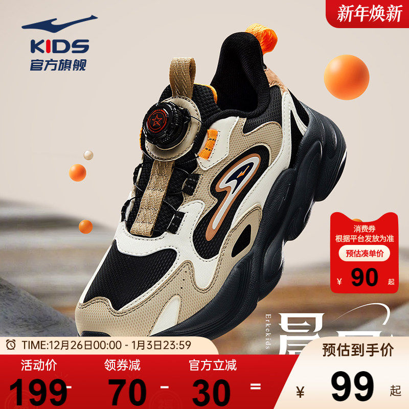 川流2|鸿星尔克童鞋男童红色秋冬运动鞋儿童旋钮新年鞋大童休闲鞋