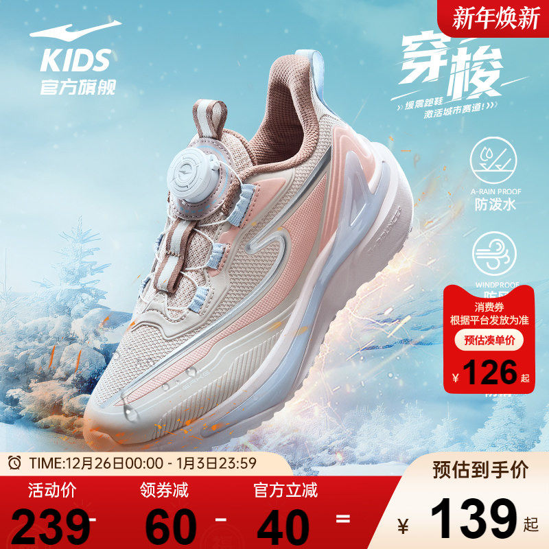 穿梭4|鸿星尔克童鞋儿童运动鞋女童鞋秋冬中大童革面防泼水跑步鞋