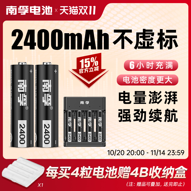 南孚5号充电电池套装耐用型1.2V 2400mAh镍氢7号可通用充电器五号七号遥控器玩具大容量AA可充电电池