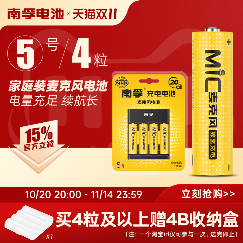 南孚KTV充电电池 5号麦克风无线话筒专用2050mAh五号镍氢可充电电池4粒大容量冲电电池1.2V一盒批发KTV电池