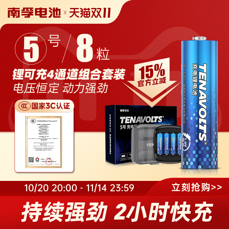 南孚锂可充电电池5号7号8节粒套装组合装 1.5V恒压快充五号充电锂电池大容量游戏手柄吸奶器充电器通用七号