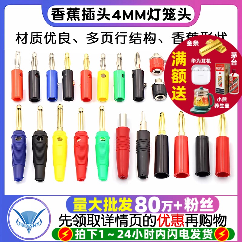 4mm 2mm香蕉插头音箱插头插座 灯笼头喇叭线香蕉头接线端子面包板