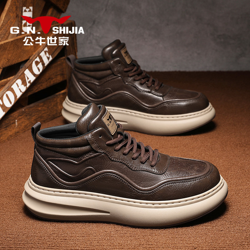 公牛世家男鞋2025新款冬季真皮运动休闲老爹鞋子增高厚底高帮板鞋