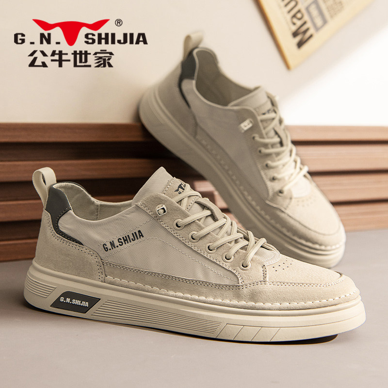 公牛世家男鞋冬季真皮百搭休闲皮鞋男皮面高级感平底板鞋潮流鞋子