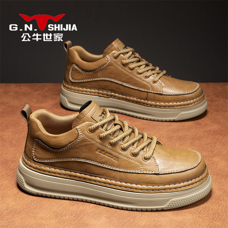 公牛世家男鞋冬季2025新款休闲皮鞋男士真皮板鞋厚底运动工作潮鞋