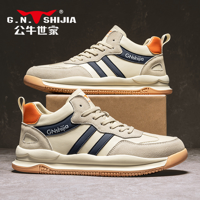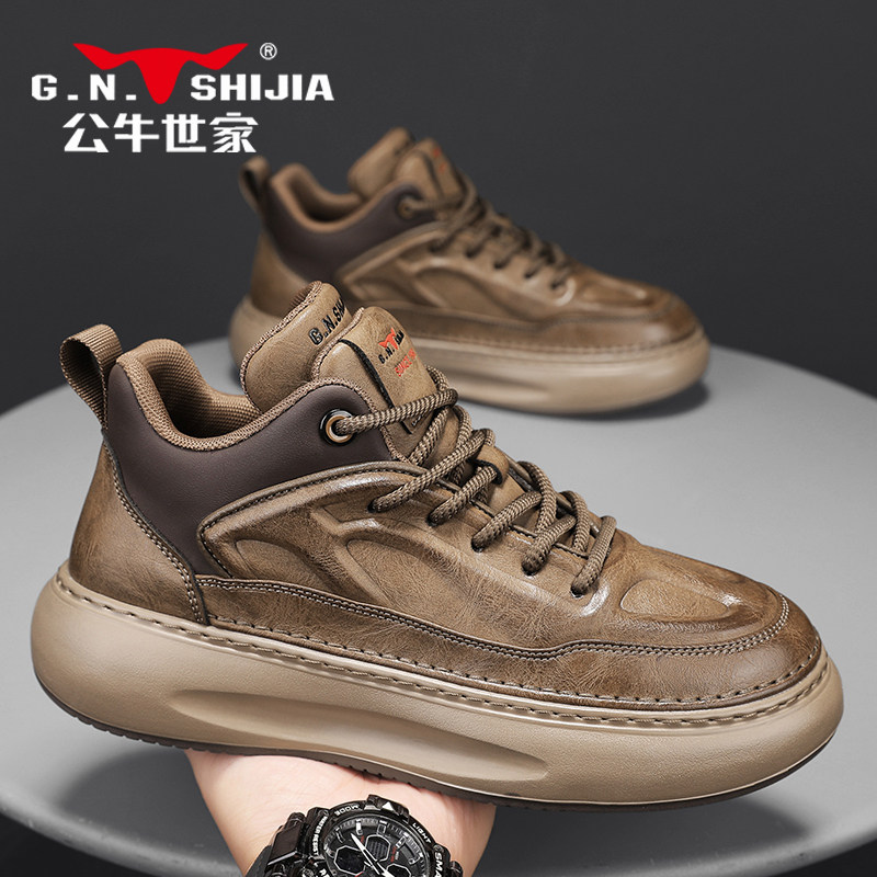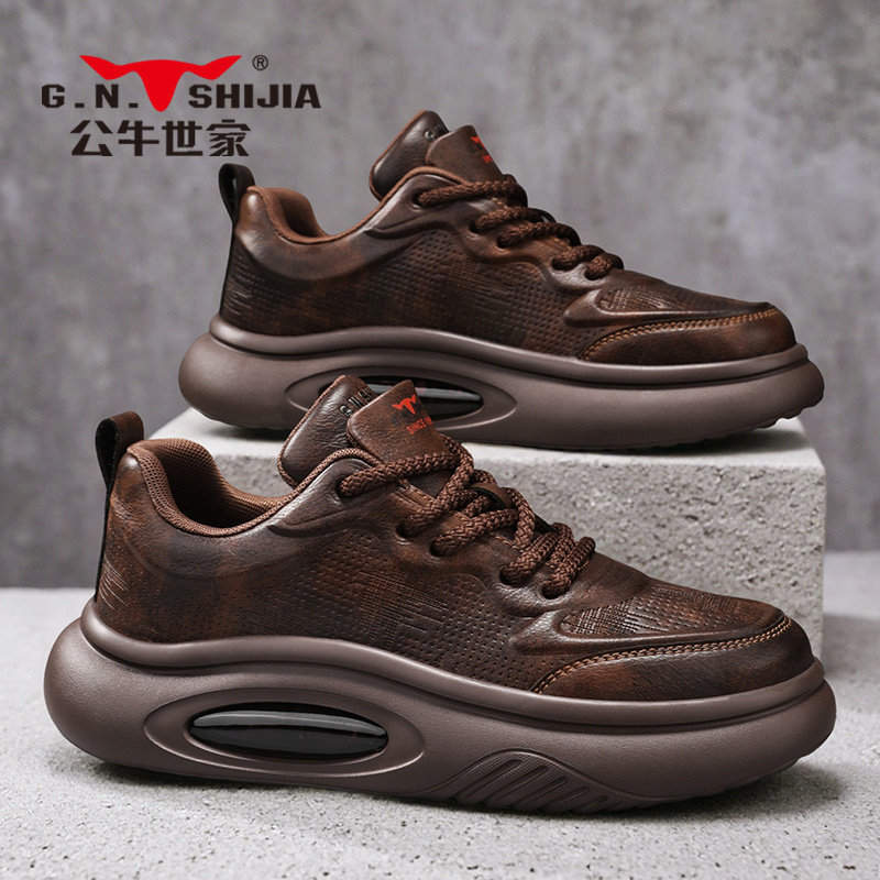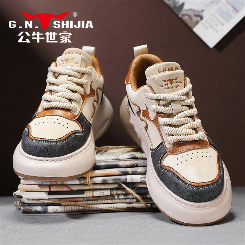 公牛世家男鞋2025新款潮牌高级感真皮休闲厚底运动鞋爆款老爹鞋子