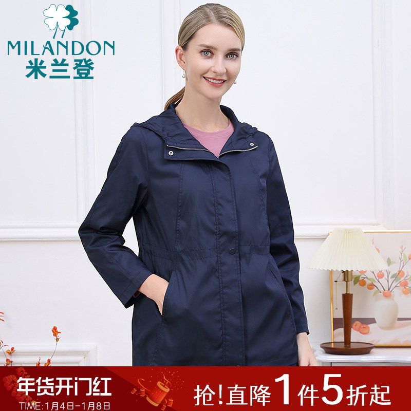 米兰登中老年妈妈装春秋季新款时尚风衣女连帽外套休闲宽松保暖潮