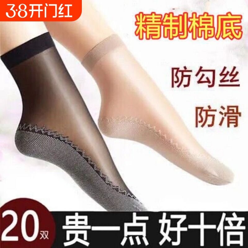 20双棉底丝袜女短袜夏季防滑女士袜子肉色防勾丝中筒水晶薄款脚底