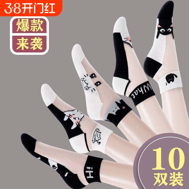 10双秋冬棉底加厚防滑防臭丝袜女短中筒天鹅绒保暖纯色黑色短袜子