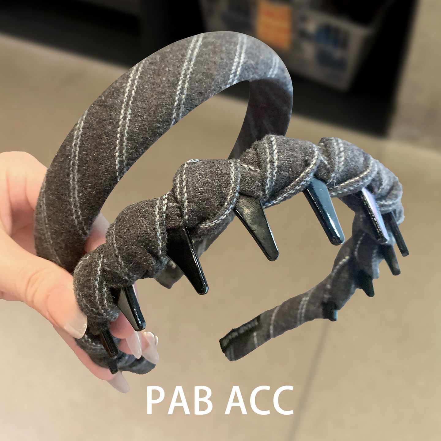 韩国简约百搭灰色条纹缠绕褶皱发箍日常通勤防滑齿压发捆洗脸头箍
