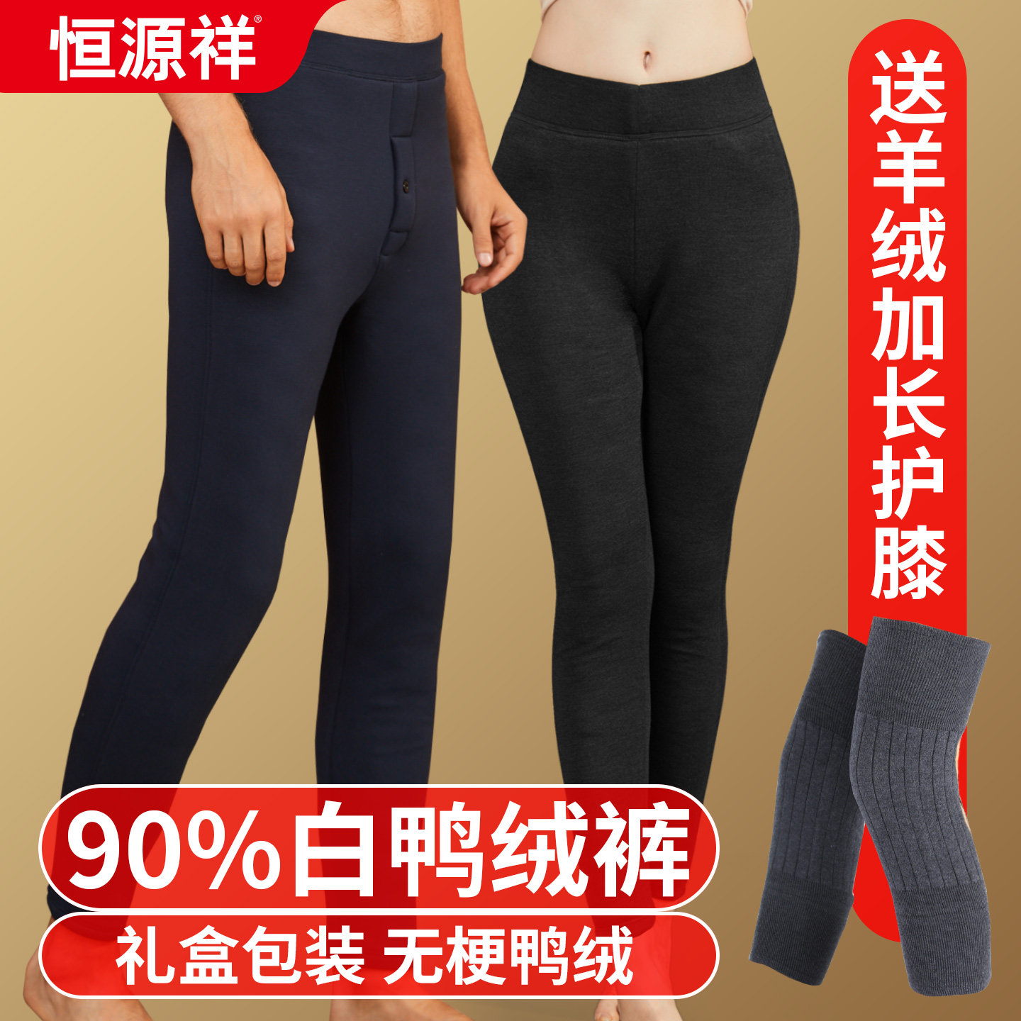 恒源祥正品羽绒裤男内穿修身90白鸭绒棉裤加绒加厚护膝保暖裤盒装