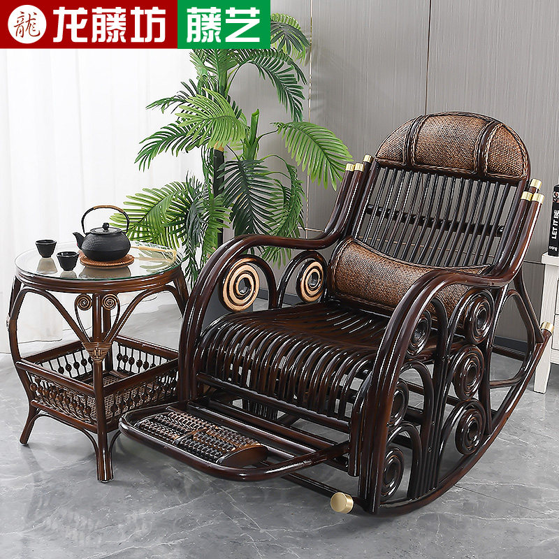 送老人天然印尼真藤摇摇椅老人躺椅藤编懒人椅阳台家用休闲藤椅茶