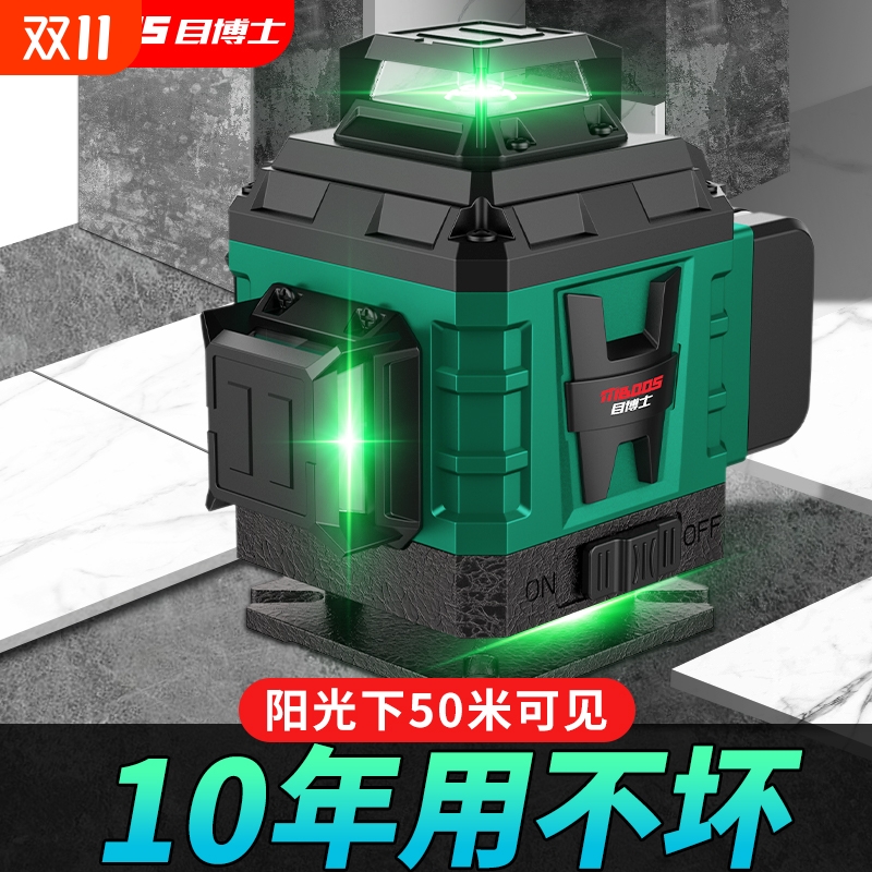 12线红外线水平仪高精度强光细线激光贴墙地户外绿光自动调平水仪