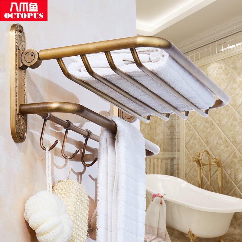 全铜仿古折叠浴巾架 免打孔毛巾架 欧式卫生间浴室置物架五金挂件