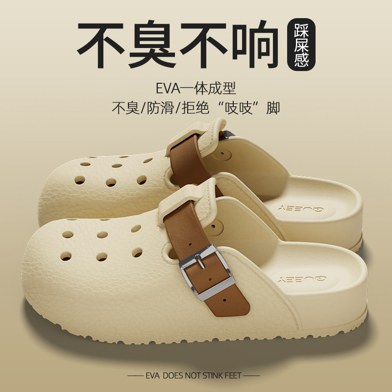 厚底洞洞鞋女款2025新款夏季外穿eva防滑防臭踩屎感包头半拖鞋女