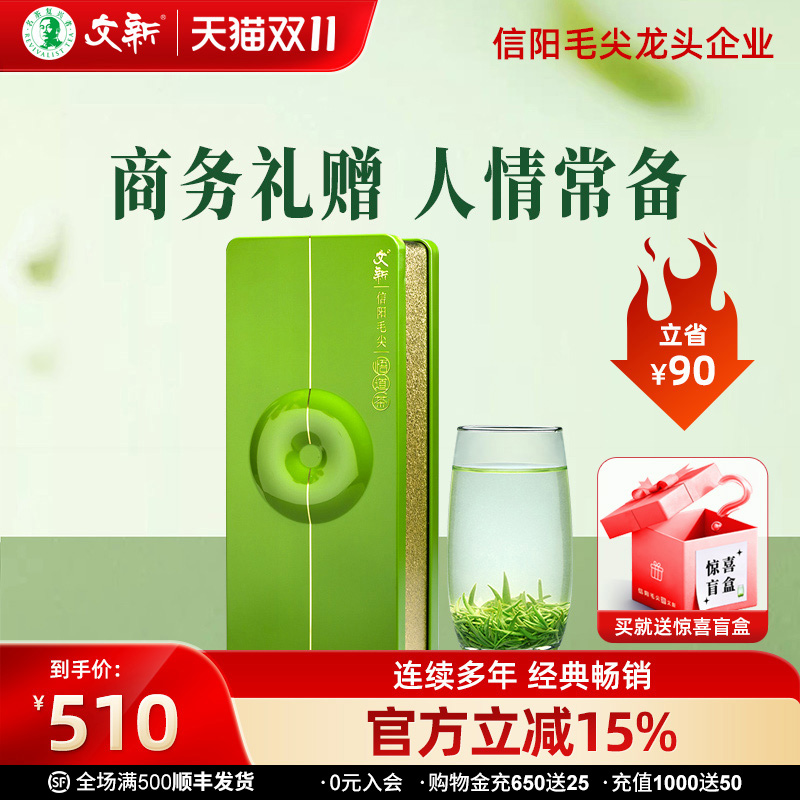 春茶上市文新信阳毛尖茶叶绿茶2025新茶明前嫩芽悟道礼盒装120g