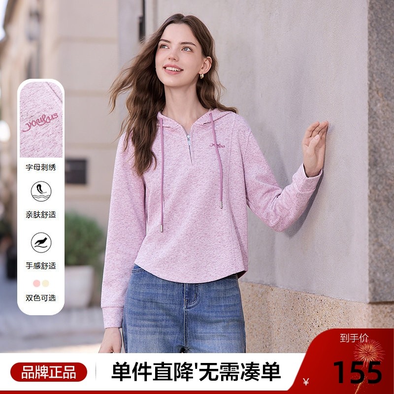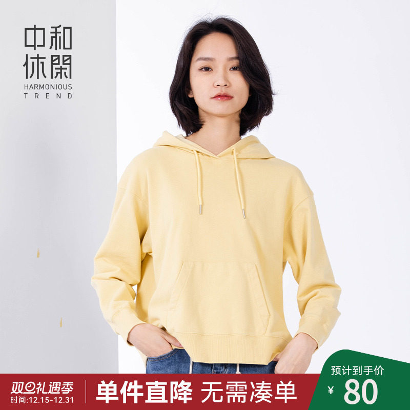 中和休闲女装连帽卫衣女春秋新款淡黄色显白短款套头衫B61186141