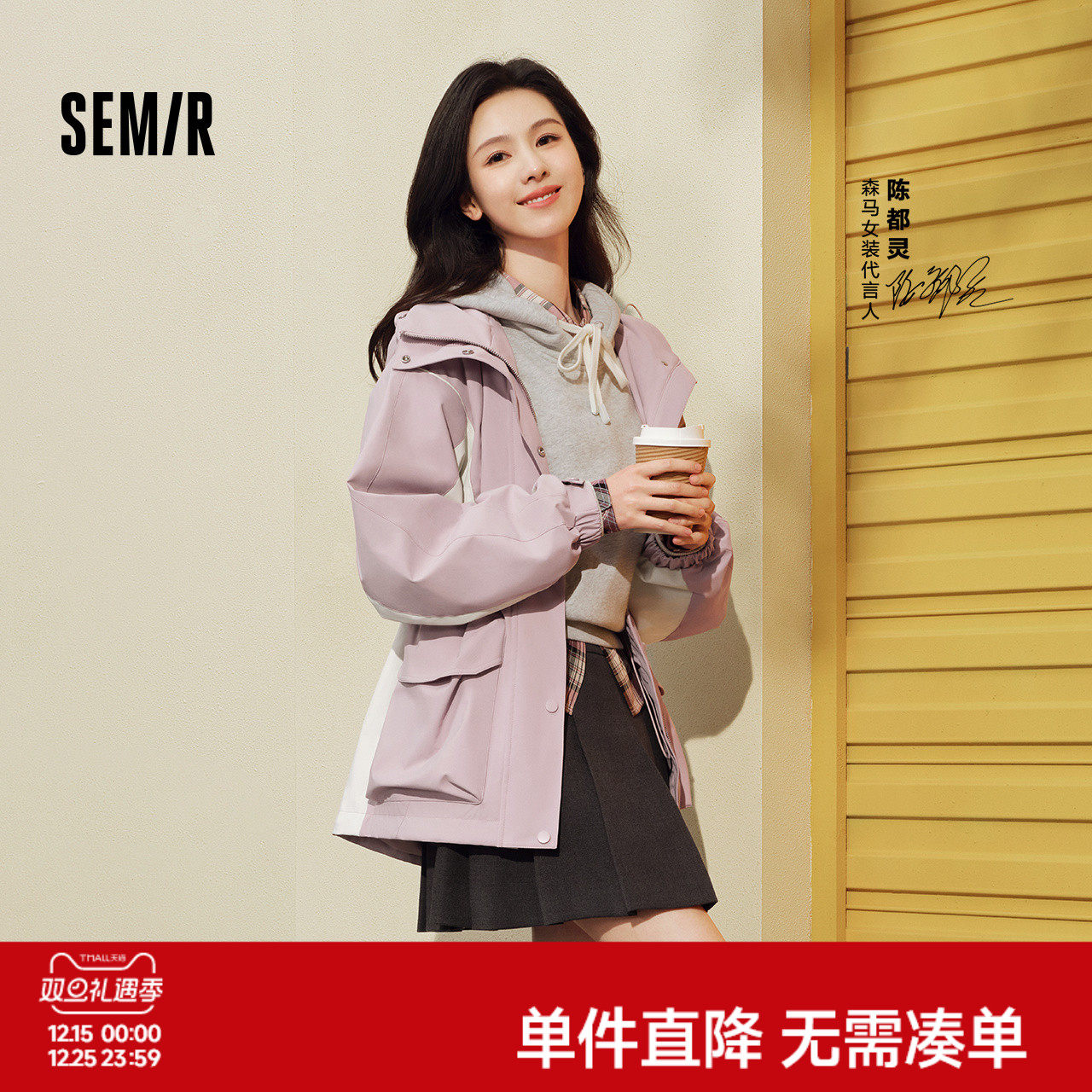 森马卫衣女短款基础款慵懒风套头衫百搭秋季简约落肩宽松连帽衣服