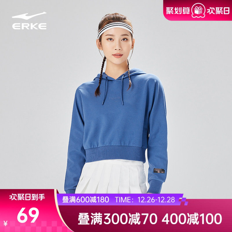 鸿星尔克卫衣女冬季女士连帽运动休闲卫衣带帽套头衫短款上衣女装