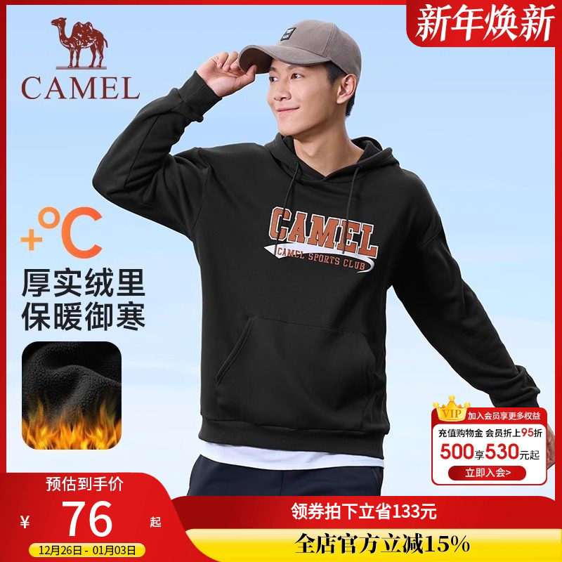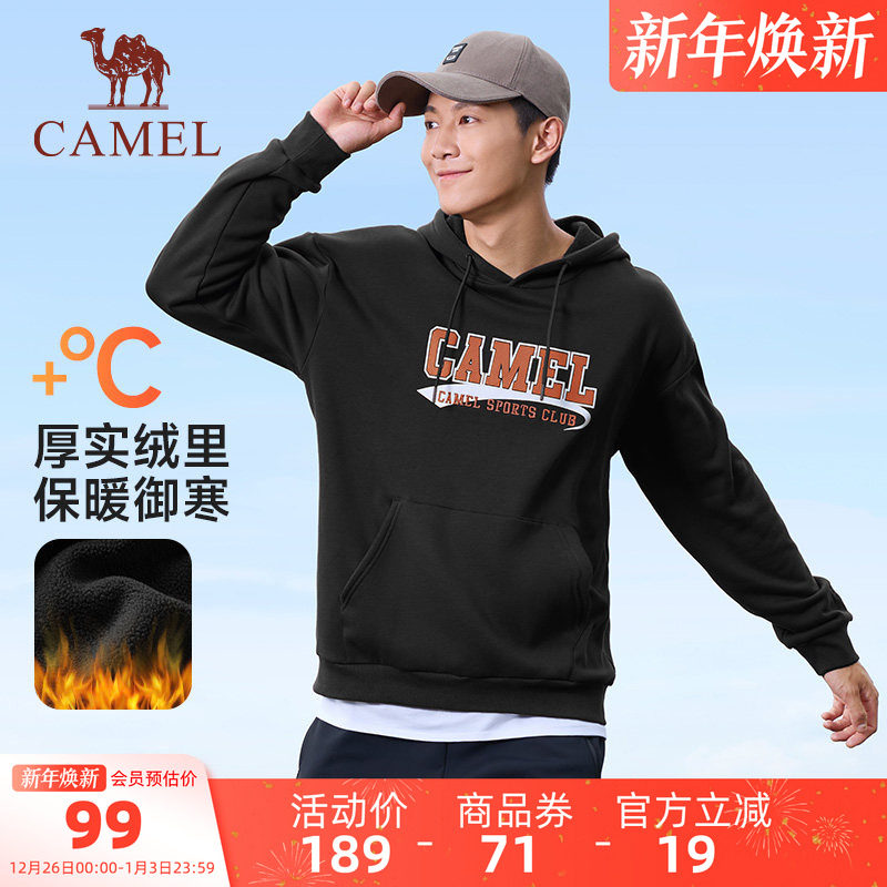 骆驼男装短款秋冬清仓运动休闲上衣男加绒套头长袖宽松连帽卫衣女