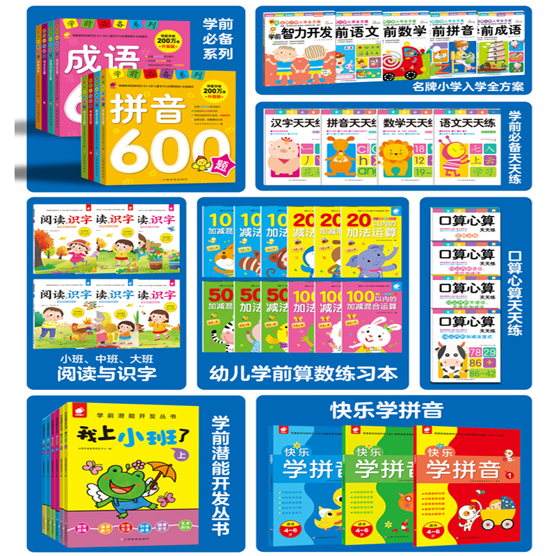 唐诗三百首成语故事新旧版混发儿歌唐诗宋词 学前数学语文拼音彩绘注音版3-7岁少儿 100以内的加减法小学入学准备启蒙教育幼小衔接