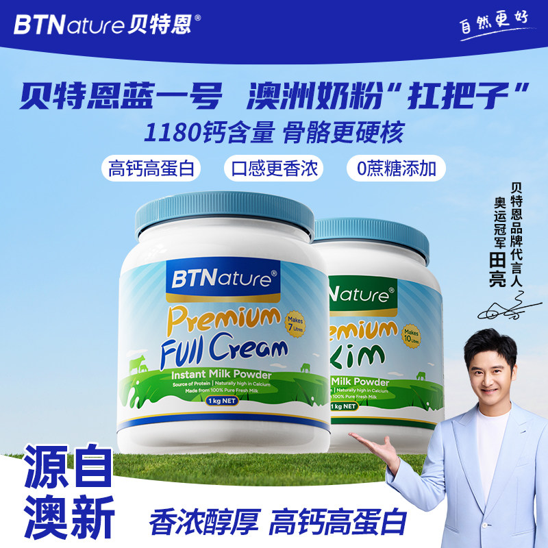 进口脱脂奶粉澳洲蓝一号成人无蔗糖低脂奶粉贝特恩官方正品旗舰店