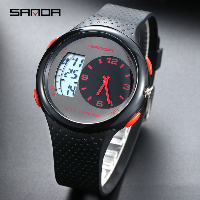 三达新款双显潮牌欧美大表盘运动多功能户外防水手表男表女表学生