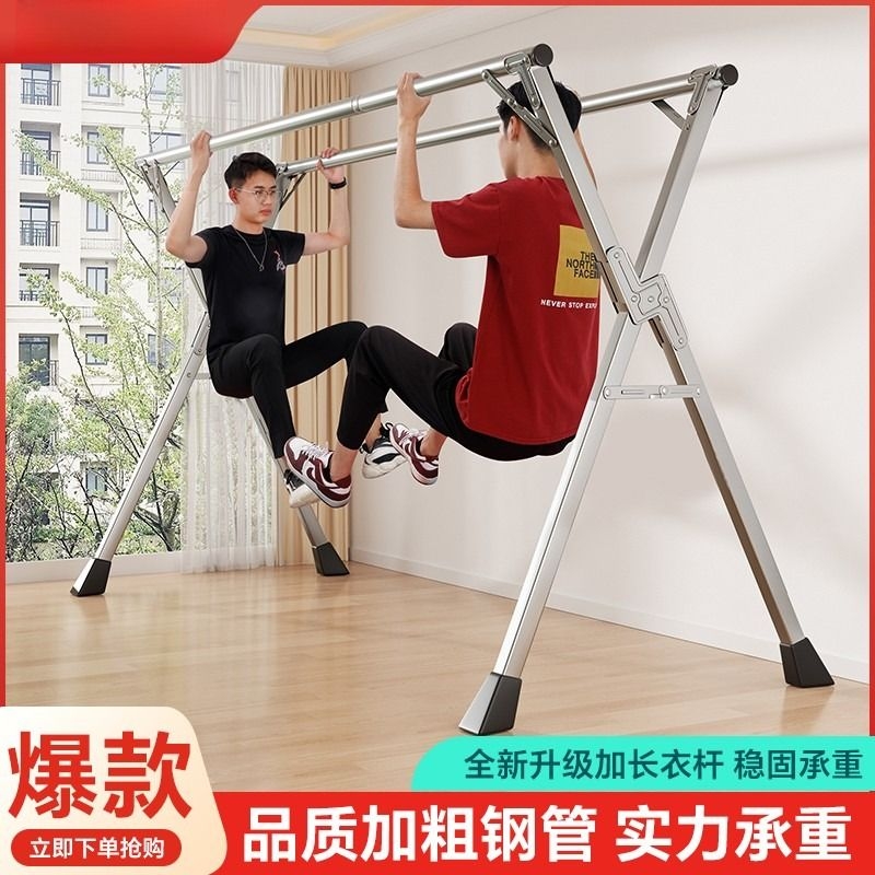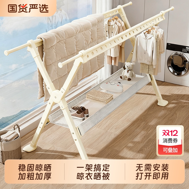 加粗加厚落地折叠晾衣架室内阳台卧室挂衣架室外伸缩晒被子架钢管