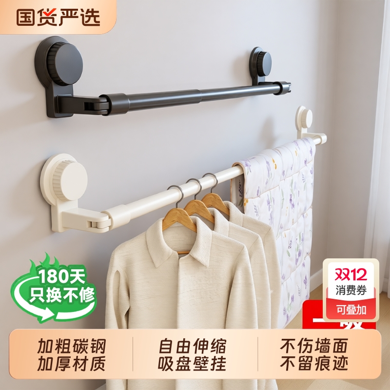 吸盘式阳台壁挂晾晒架可调节护栏窗户晒鞋架室外伸缩晾晒杆晾衣杆