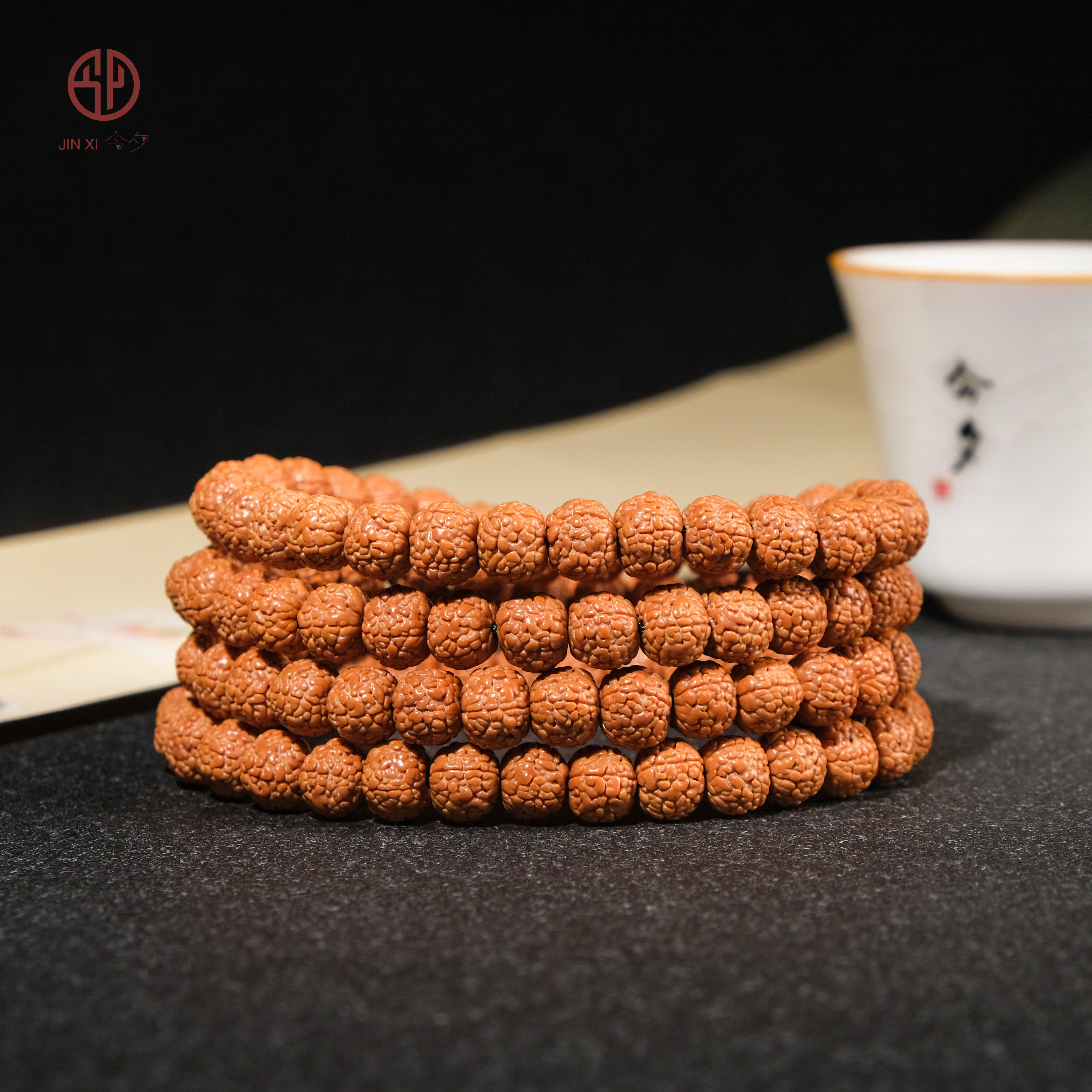 龙鳞纹红皮沉水爆肉小金刚菩提子108颗五瓣羊角算盘配饰男士手串