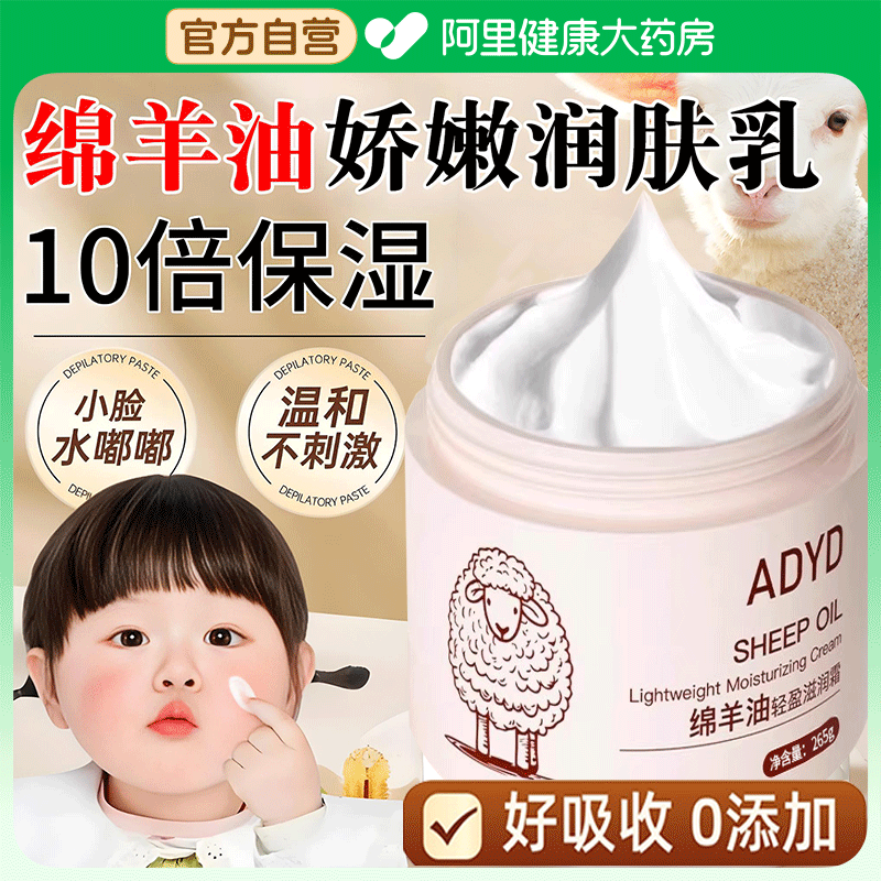 儿童面霜绵羊油3岁宝宝专用6到12岁男女孩补水保湿秋冬润肤乳擦脸